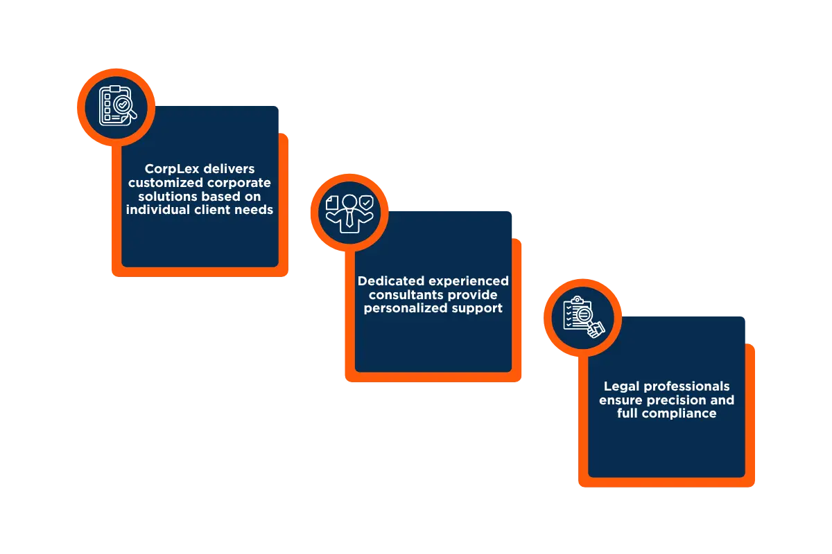 CorpLex was established with a mission to reshape corporate services industry by providing customized solutions to each client based on their individual needs. We prioritize every client and assign a dedicated experienced consultant to them, providing dedicated support and ensuring we understand the client’s needs thoroughly and provide solutions tailored to those needs.