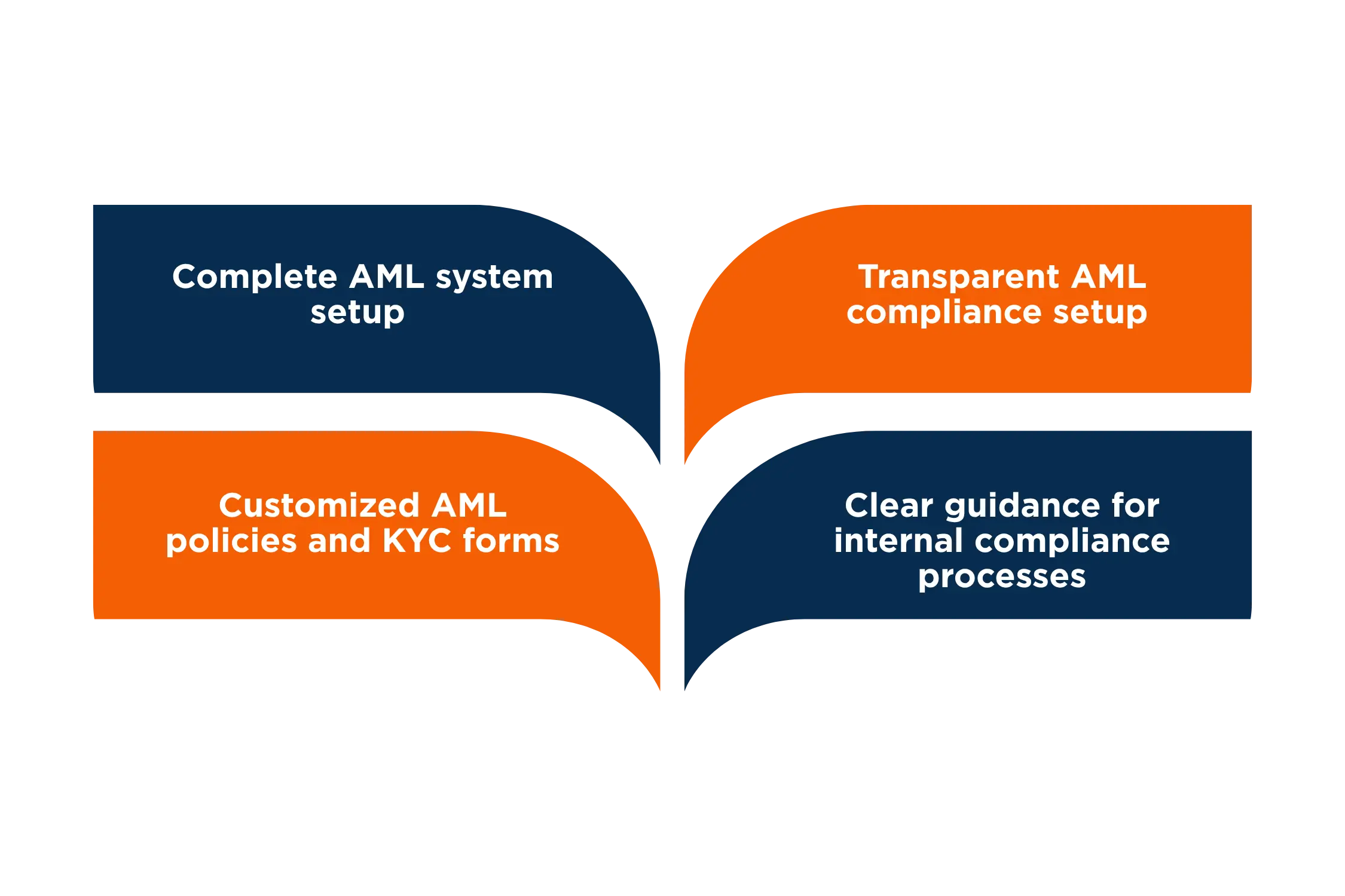 We prepare customized AML/CFT policy, controls, and KYC forms (7-10 business days)