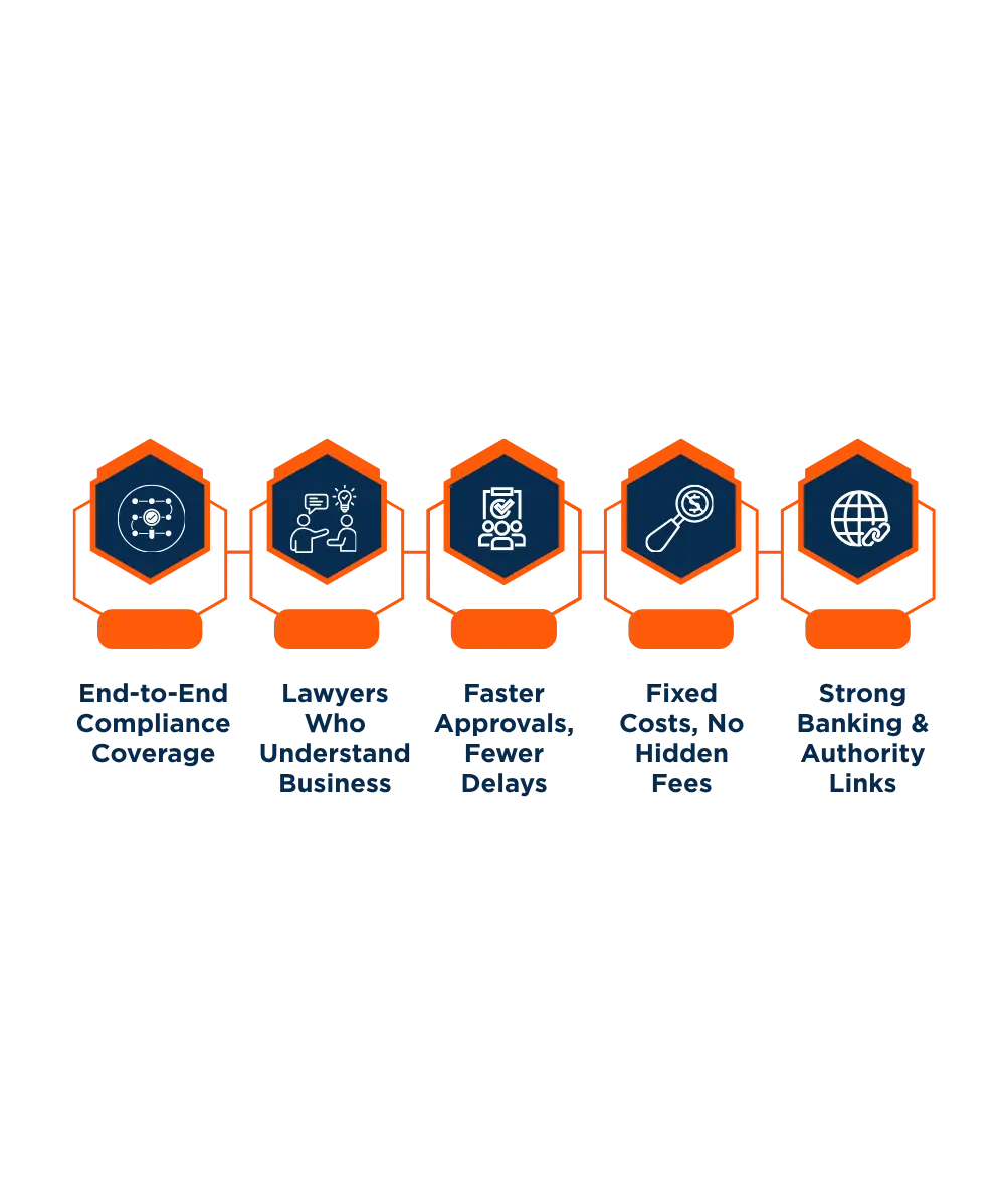 We secure the correct trade license, handle authority approvals, and guide you through visa and bank account setup.