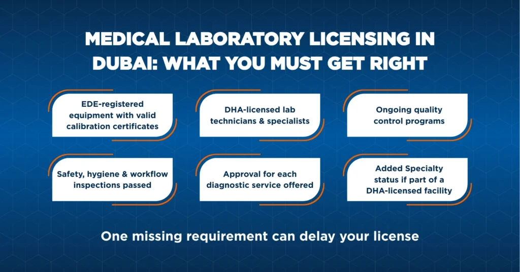 Each type has compliance standards of its own, DHA approval requirements, and facility layout specifications. If the lab type is chosen primarily, it ensures that the setup aligns with Dubai Health Authority regulations from the start.
